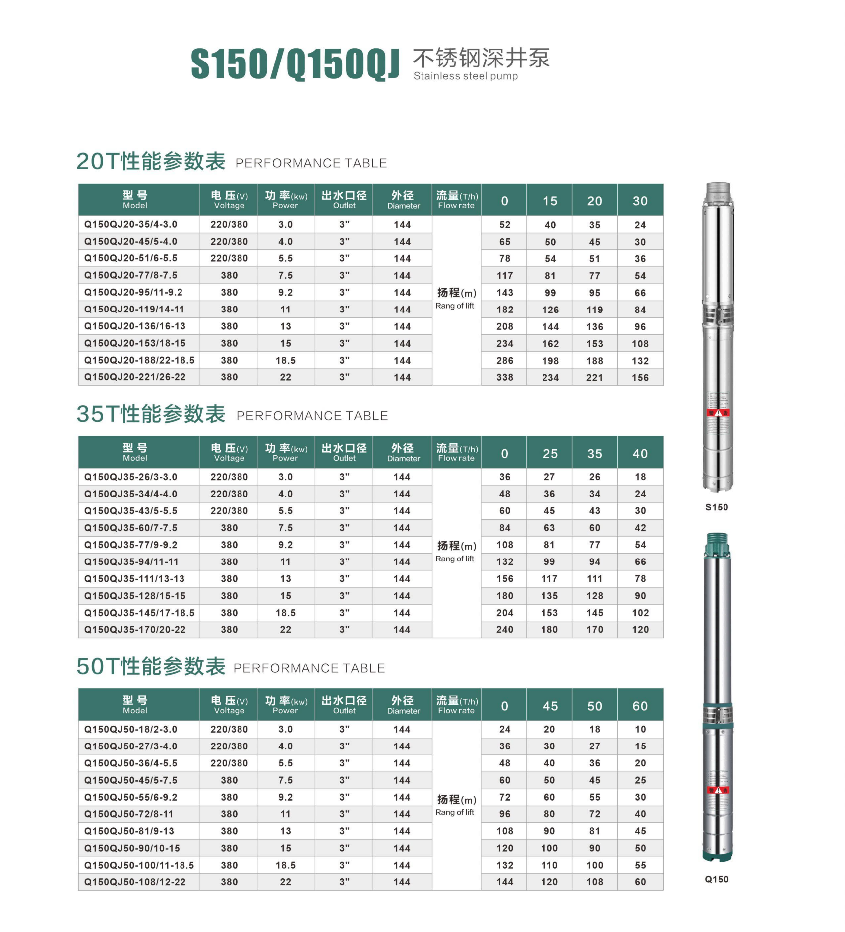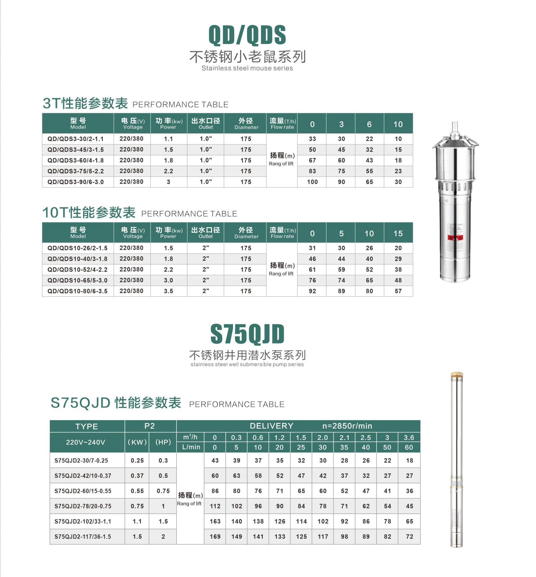 QJD不鏽鋼深(shen)井泵電泵(bèng)在下列使(shǐ)用條件下(xià)能連續正(zheng)常工作: